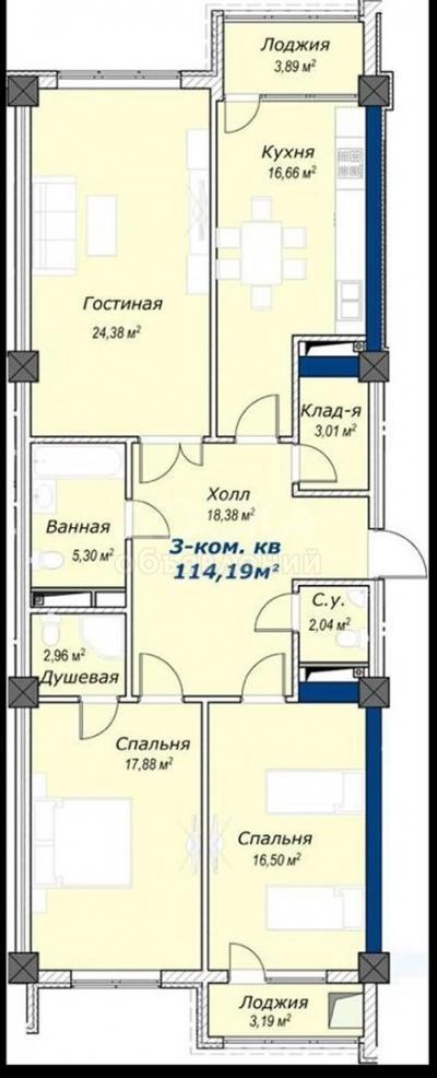 Площади квартир: 75кв.м и 114 кв.м