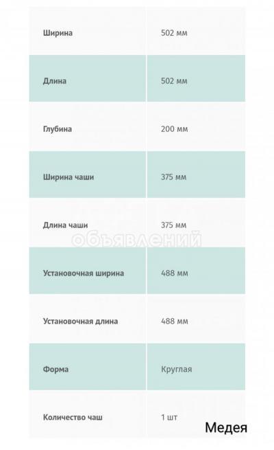 Кухонная мойка "Медея" 502 мм диаметр 200 мм глубина чаши.