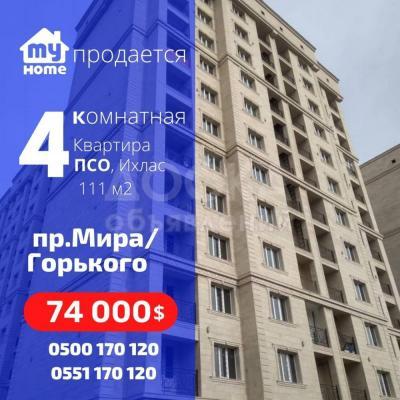 Срочно продается 4 ком.кв., 111 м2, ПСО, Ботсад, 74т.$.