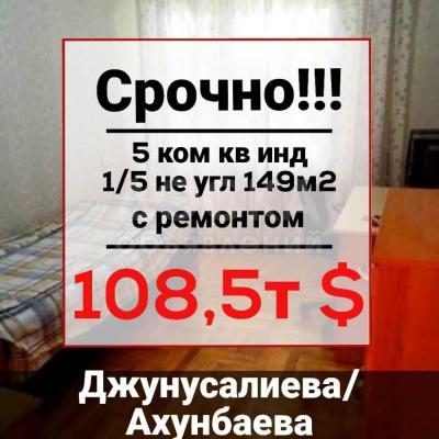 Продаю 5 ком. кв. 1/5 инд 149м2 Джунусалиева/Ахунбаева 108500$ Срочно! 0555 11 88 40