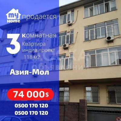 Срочно продается 3 ком.кв. 118 м2, индив., район Азия Мол. 74т.$. Тел: 0500 (551) 170 120