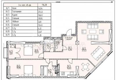 Квадратура квартир колеблется от 44 кв.м до 119 кв.м