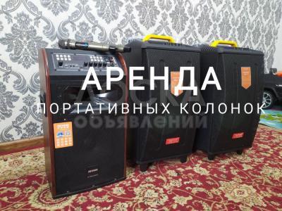 Аренда портативной колонки с радио микрофоном.. подойдёт на любое мероприятие.. Тои, день рождение, гулянка, отдых на природе и другие мероприятия. Хорошое качество микрофонов можно петь караоке. Заряда хватит на 4-6 часов прослушивания...