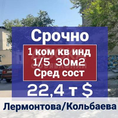 Срочно! 1ком. кв. 30м2. К/Т 1/5. р. Таатан 22.4т$ тел: 0706313233