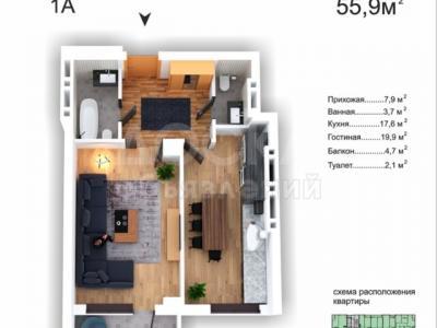 Общая площадь 55.9м²