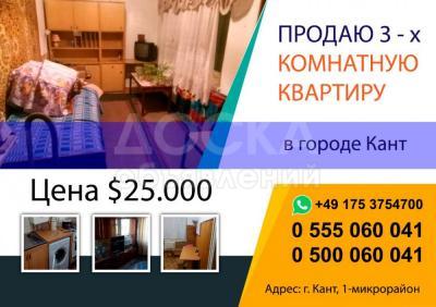 Продаю 3-комнатную квартиру, 60кв. м., этаж - 1/3, г. Кант.