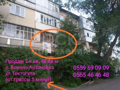 ПРОДАМ 2 К.КВ, В КИРП.ДОМЕ, 48 КВ.М. НАЧАЛО С. ВОЕННО-АНТОНОВКИ, УЛ.ТОКТОГУЛА(ОТ ТРАССЫ 5 МИНУТ). ЭТАЖ 2 ИЗ 4. ИНД.ПРОЕКТ, САН УЗЕЛ РАЗДЕЛЬНЫЙ. БАЛКОН. КВАРТИРА СУХАЯ, ТЕПЛАЯ, ПРОСТОРНАЯ. ОТОПЛЕНИЕ ЭЛЕКТРИЧ. РЯДОМ МАГАЗИНЫ, БАНЯ, ПАРИКМАХЕРСКАЯ. КРАСНАЯ КНИГА, СОБСТВЕННИК. 0559 69 09 09 0555 46 46 48