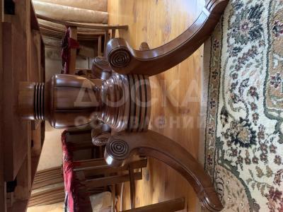 Добротный стол из массива б/у размеры 110*230, раздвигается до 3-х метров, стулья необычного дизайна из дерева , б/у размер сиденья 42*42, высота спинки 110. Самовывоз , звоните -договоримся