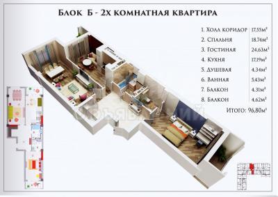 Продаю 2-комнатную квартиру, 96кв. м., этаж - 4/10, Медерова 40.