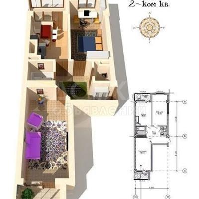 Площадь: 65 м2 (сквозная планировка)