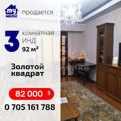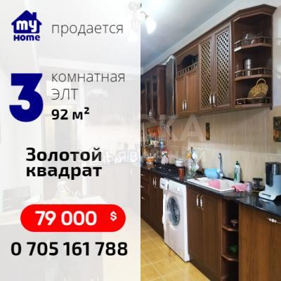 Срочно продаю. 3 квартиру 92 кв.м. 2/9 эт., Золотой квадрат, Бишкек 79 000 $