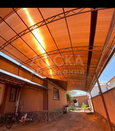-Площадь дома 93 м2, 5 комнатный, с евро ремонтом, потолок 2.5-3 м., мебель остается частично, все окна пластиковые, с/у дома также внутри и снаружи, 2013 г. п., утеплённый, имеется 3-х времянка, очоккана (рассчитанный на 100-80-60 литров) и подвал 2 комнаты для варенье, топки и т. д.