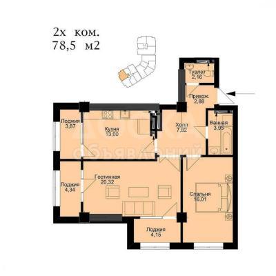 Площадь 78.5м2