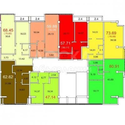 Площадь: 47м2, 57м2, 59м2, 63м2, 69м2, 73м2, и 80м2