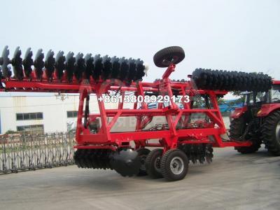 1BZD гидравлическая тяжелая дисковая борона со складывающимися крыльями предназначена для лущения стерни в поля до почвообработки, особено предназначена для глинистой тяжелой почвы. Характеризует высокую эффективность работы, оптимальное использование мощности, хорошую способность вхождения в почвы, хорошую способность дробления почвы, рабочее сопротивление маленькое, производительная эффективность высокая,рабочая себестоимость низкая, ровная земная поверхность после боронования, почва рыхлая,имеется более сильная приспособляемость к глинистой тяжелой почве и целине и сорной почве. Оснащен гидравлическим подъемным надувным резиновым колесо транспорта. удобство перевозки, легкое обслуживание и регулирование,маленький радиус поворота ,является ведущей продукцией дисковой бороной в стране и за рубежом.
