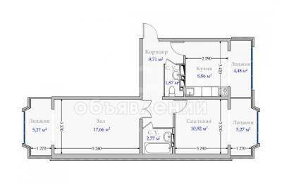 Продается просторная 2-х комнатная квартира площадью 66,81 кв.м.