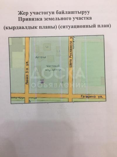 Продаю участок под строительство, 5 соток г.Бишкек, Первая линия по улице Шота Руставели пересечение улица Гагарина .