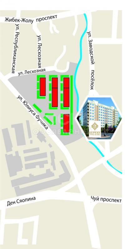 Локация имеет удобный выезд на главные транспортные автомагистрали – Чуйский проспект и проспект Жибек Жолу.