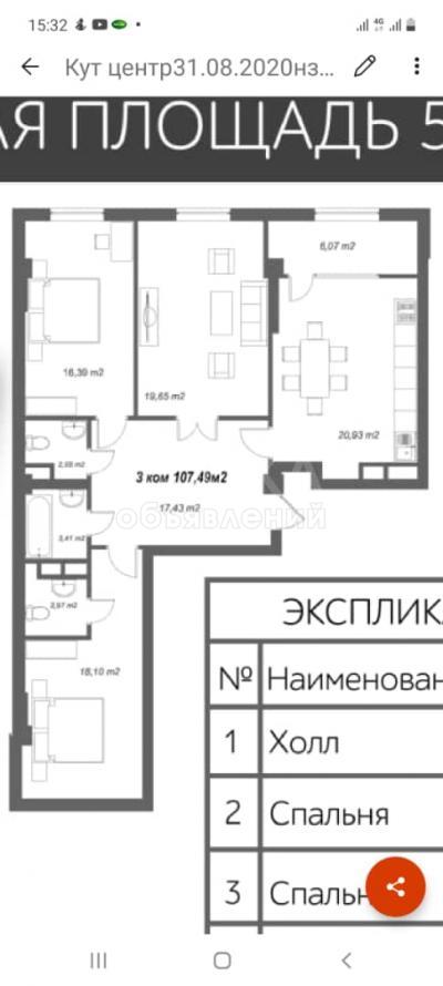 Площадь 107.4 м2, 6 этаж из 13