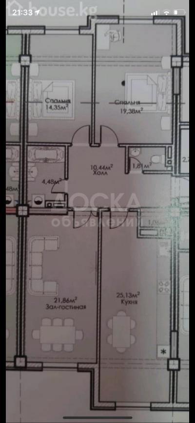 Продаю 3-комнатную квартиру, 97кв. м., этаж - 3/10, Токомбаева Сухэбатора .