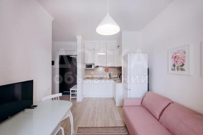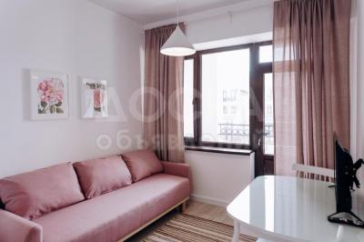 6. Гостиную комнату с открытой кухней и балконом выходящим во внутренний дворик