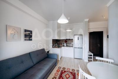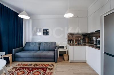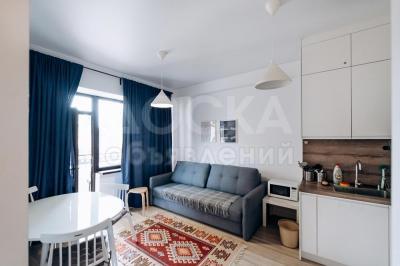 6. Гостиную комнату с открытой кухней и балконом выходящим во внутренний дворик