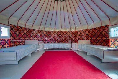 Так же есть 2 белые юрты вместимостью по 3 человека каждая, проведены розетки и электрическое освещение.