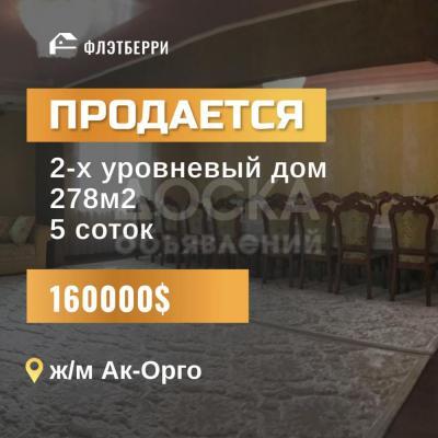 Продаю дом 9-ком. 278кв. м., этаж-3, 5-сот., стена кирпич, ак-орго.