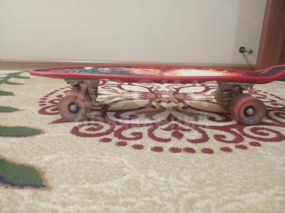 Пениборд,хорошее сотояние,без дефектов ,можно настроить разворот колес , при повороте колеса появляются разноцветные огоньки, есть отверстие для удобного переноса.Покупайте!
