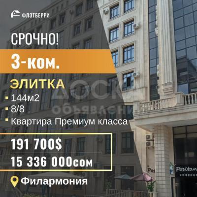 Продаю 3-комнатную квартиру, 144кв. м., этаж - 8/8, филармония.