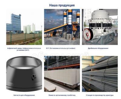 Асфальтобетонный завод, стеновые изделия из полистиролбетона, предварительно напряженный безопалубочный пол, газопенобетон, дробильно-сортировочное оборудование, различные башенные краны, линейные краны, козловые краны и различные виды грузоподъемного оборудования, погрузчики, автокраны, различные транспортные средства, такие как краны, дорожные катки, вилочные погрузчики, грейдеры, строительные машины и техническое оборудование.
