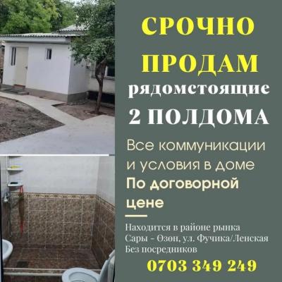 СРОЧНО ПРОДАМ рядомстоящие 2 ПОЛДОМА В каждом по 2 комнаты + кухня, коридор Участки по 5 и 2 соток Двор огорожен Внутри дома все условия (хол/гор вода, душ, туалет). Все коммуникации, в т.ч. природный газ, канализация Все документы в наличии Цена дого