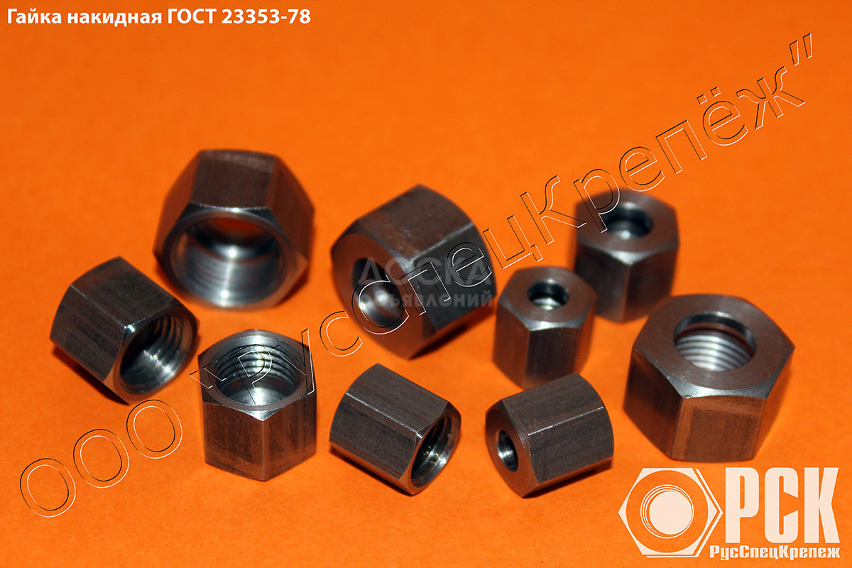 Накидные гайки: ГОСТ 13958-74, ГОСТ 13957-74, ГОСТ 16046-70, ГОСТ 16047-70, ГОСТ 23353-78, ГОСТ 28941.26-91, ОСТ 1 12928-77, ОСТ 1 12929-77, ОСТ 1 12930-77, ОСТ 1 12931-77, ОСТ 1 14679-90, ОСТ 1 10315-72, ОСТ 1 10870-72, ОСТ 1 10871-72, 4594А, 4595А и т.д.