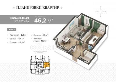 * площадь 46,1 кв.м.