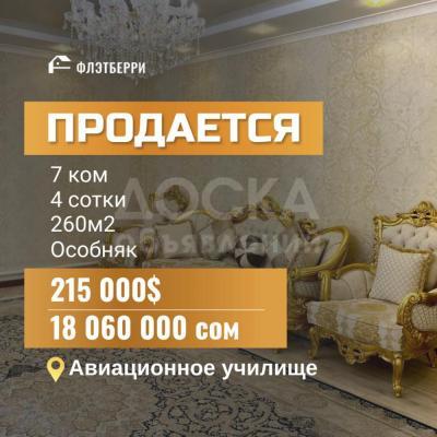 Продаю дом 7-ком. 260м2кв. м., этаж-2, 4-сот., стена кирпич, Авиационное училище.
