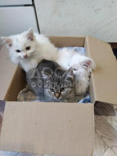 Отдадим бесплатно троих очаровательных дворовых котят.все девочки, двое беленьких, одна серенькая. Котятам примерно 2,5 мес. ,приучены к рукам, людей не боятся, очень ласковые, обучаемые и сообразительные, приучены к лотку! Звонить по тел. , спросить Татьяну.