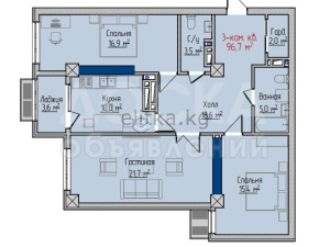 Продаю 3-комнатную квартиру, 97кв. м., этаж - 13/16, Политех Айни / Бакаева .