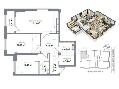 Продаю 3-комнатную квартиру, 90кв. м., этаж - 13/15, Асанбай .