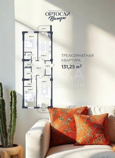 Продаю 3-комнатную квартиру, 131кв. м., этаж - 3/9, с. Орто-Сай.