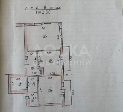55,6 м2 + два балкона 7 м2