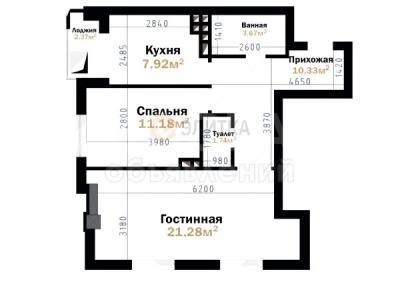 Общая площадь квартиры 58,5м²