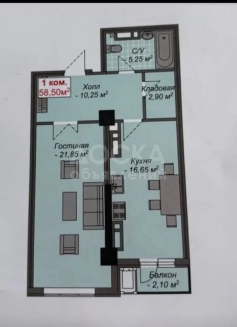 Площадь: 58 кв м
