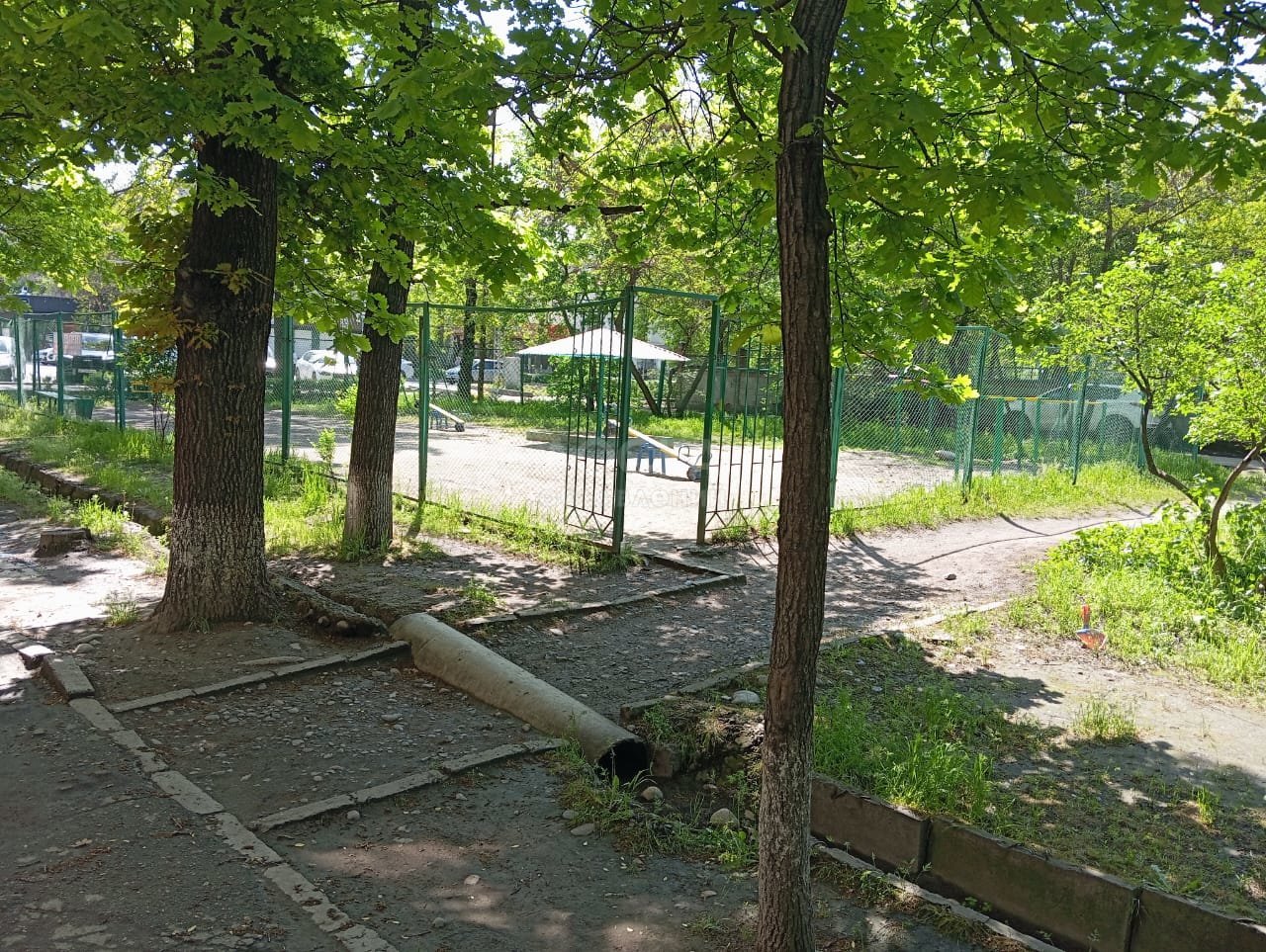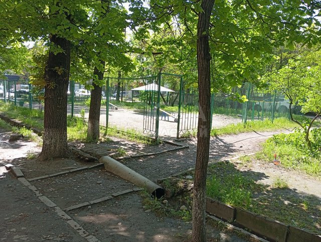 Очень тихое и спокойное месторасположение дома, чистые подъезды, детские площадки, парковка, очень много деревьев!!!