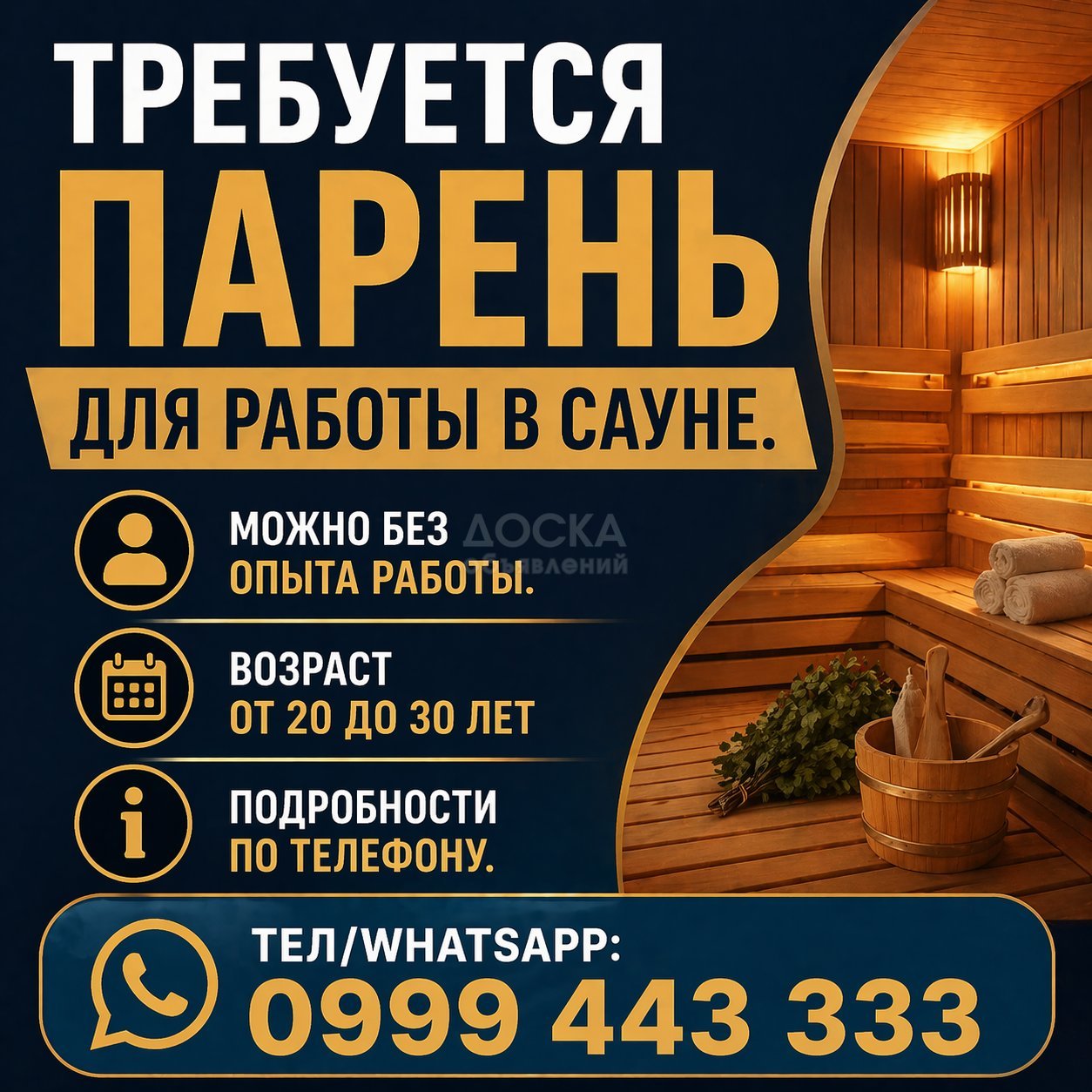 Требуется парень для работы в сауне, можно без опыта