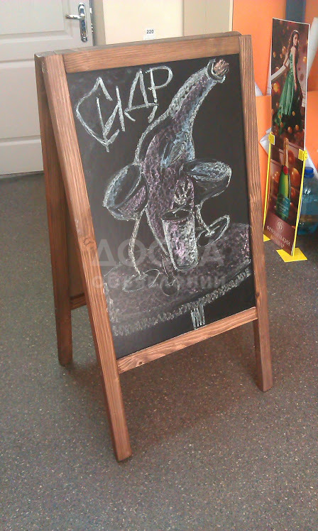 С недавно го времени владельцы кафе, бистро и ресторанов да и вообще любой сегмент бизнеса остро нуждается в привлечений клиентов с улицы . Меловой деревянный штендер при входе в заведение станет прекрасным вариантом дополнительного привлечения клиентов. А если креативно подойти к рисунку или надписи мелом, клиенту будет любопытно заглянуть внутрь кафе, бистро или ресторанчика.