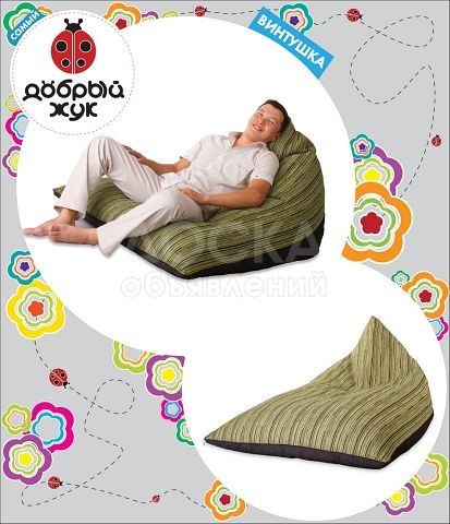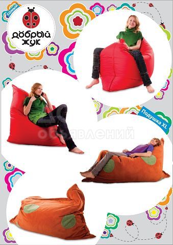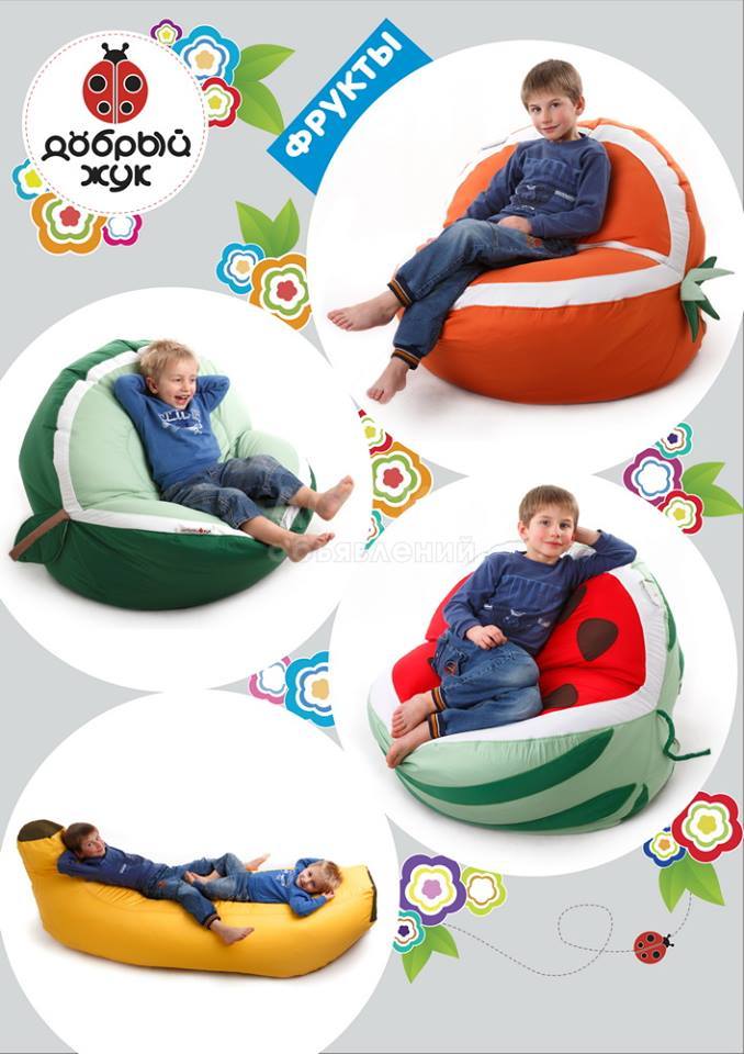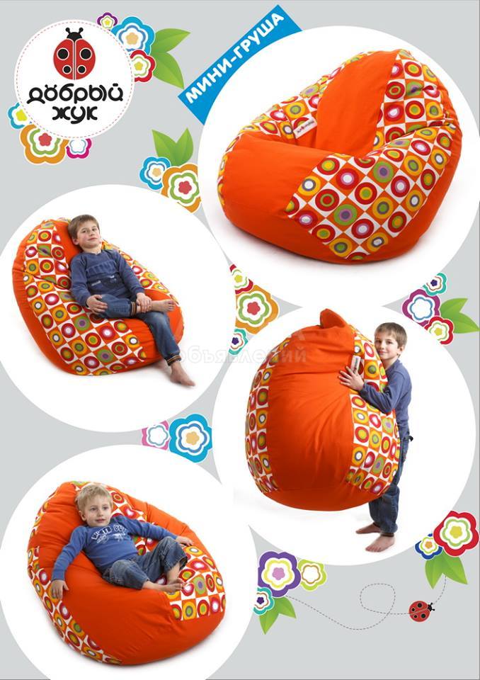 Бин бэги (или, как их еще называют, кресла — мешки и кресла — груши), завоевывают все большую популярность. Любят такие кресла не зря: очень мягкие, удобные, они просто чувствуют Ваше настроение и физическое состояние. Вмиг принимая форму Вашего тела, они как рукой снимают усталость: спина расслабляется, ноги отдыхают, и вот уже голова готова к новому креативу. Еще они легкие, и их можно таскать за собой с места на место, организуя личное пространство или меняя обстановку в комнате под настроение. Яркий, теплый бин бэг станет настоящим украшением офиса, гостиной, спальни и, конечно же, детской комнаты!