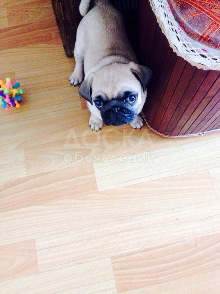 Щенок мопса-кабель, 2,5 месяца, абрикосового цвета, имеется документы с родословной, к лотку приучен. Отец:Чемпион КР