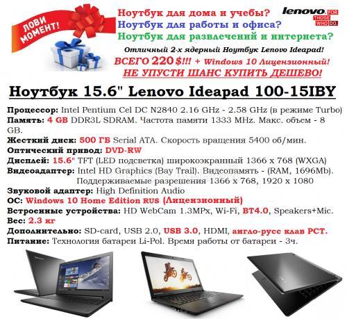 АКЦИЯ! СКИДКИ! СКИДКИ! Отличные 2-х ядерные и 4-х ядерные мультимедийные ноутбуки LENOVO для работы, офиса и игр!