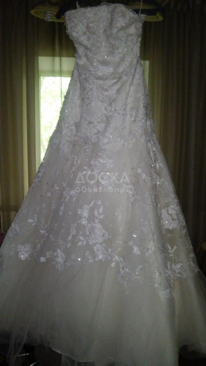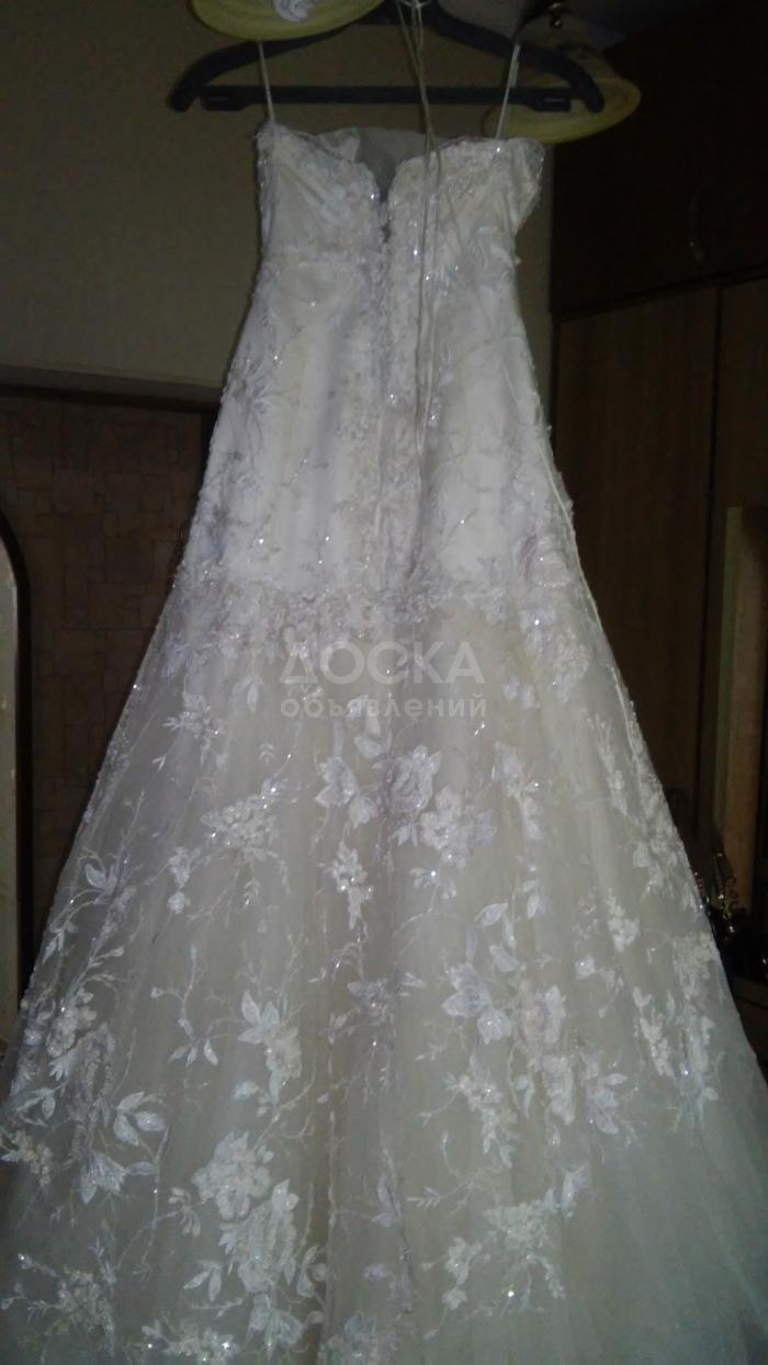 Нежное, необычное, цвет- брызги шампанского, ручная вышивка, имеется подьюбник (одно кольцо), платье в стиле рыбка, регулируемый корсет, рост до 175 см. После химчистки в идеальном состоянии. Буду рада ответить на все вопросы по телефону +996-700000208, звонить в любое время.Жду Вашего звонка, дорогие невесты!