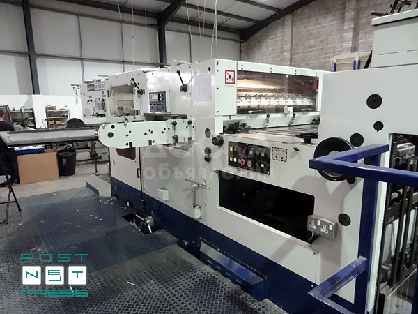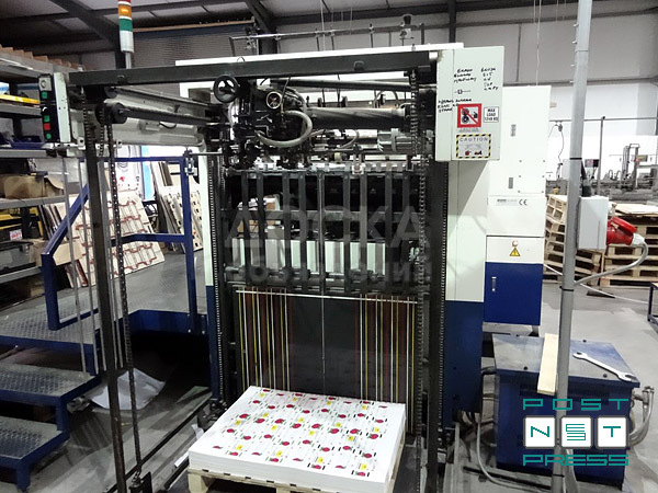 Автоматическая высекальная машина формата 106х74 см с секцией удаления облоя Sanwa TRP 1060 SE производства SANWA ENGINEERING Co. LTD. (Япония), входит в концерн MITSUBISHI HEAVY INDUSTRIES LTD. Также может выполнять биговку и перфорацию картонного кроя. Производительность до 7.500 ударов/час.